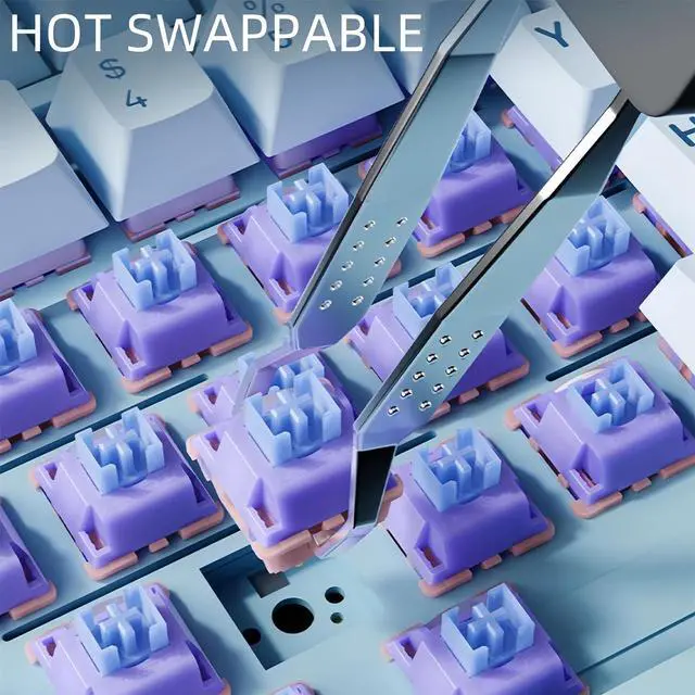 HOT SWAP CUSTOM KEYBOARDThis custom mechanical keyboard with hot-swappable base supports 3-pin or 5-pin switches replacement. Even keyboard beginners can easily DIY there own keyboards without soldering issue. LT75 gaming keyboards equipped with pre-lubed stabilizers and linear switches, bring smooth typing feeling and pleasant creamy mechanical sound, provide fast response for exciting game