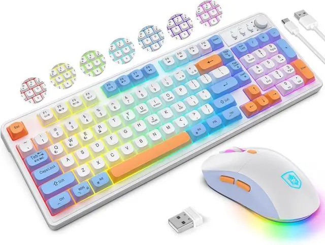 12 Gorgeous RGB Backlights Keyboard Mouse Different from other backlit keyboards Mouse, based on monochrome backlight mode ( with 8 colors), flow mode, and ripple mode have been added. Richer backlight options give you unique visual enjoyment.