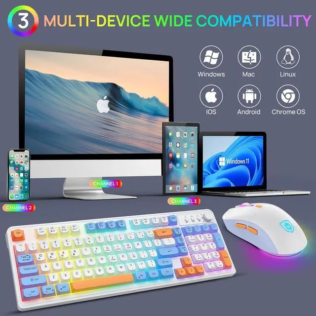 Strong compatibility with Mac layout :Press FN+TAB key to Switch Mac and Windows System ,BT98 Mac Keyboard and Mouse has has all the necessary Mac function keys while still being compatible with ,iOS,Linux, Chrome OS, Android,Laptop, Chromebooks,tablets,tv.it works with any operation system.