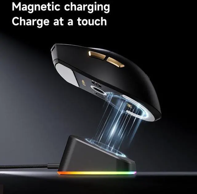 Magnetic Charging Dock & 8K ReceiverSimply place the mouse near the dock, and it will automatically be magnetically charged, making it extremely convenient. When you shut down your computer, place the mouse on the dock to charge it, and remove it when playing games, so you never have to worry about the mouse running out of power. The built-in 8K receiver eliminates the need for an additional USB port