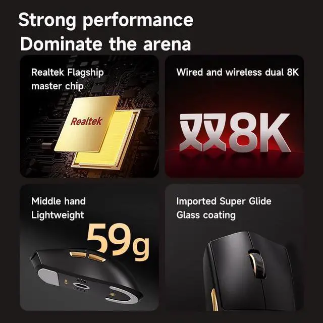 Wireless&Wired Dual 8K Hz PollingWith up to 8000Hz polling rate, MCHOSE K7 Ultra mouse experience flawless wireless performance ensures lightning-fast response times