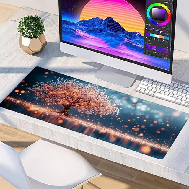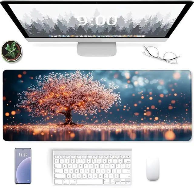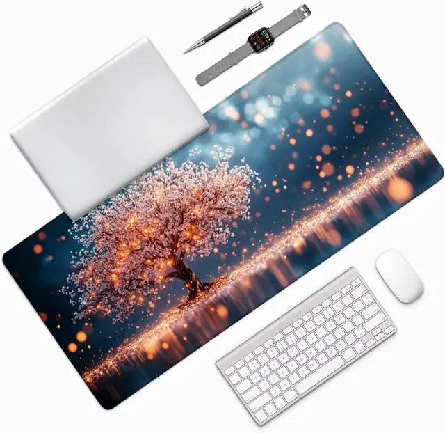Tree Mouse Pad, Gaming Mouse Pad 48x24in, Desk Mat with Stitched Edges, Large Mousepad Waterproof, Gaming Accessories Keyboard Mat, Office Desk Accessories, for Gamer Computer Office Home, Pink W-5520