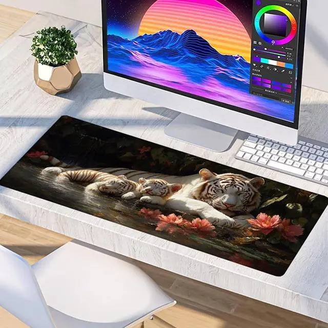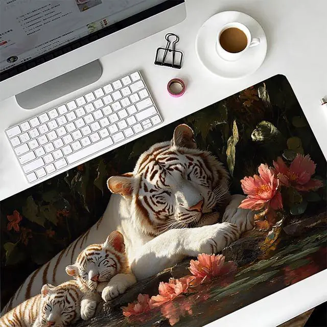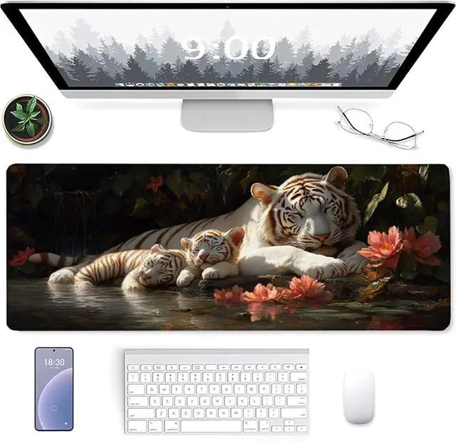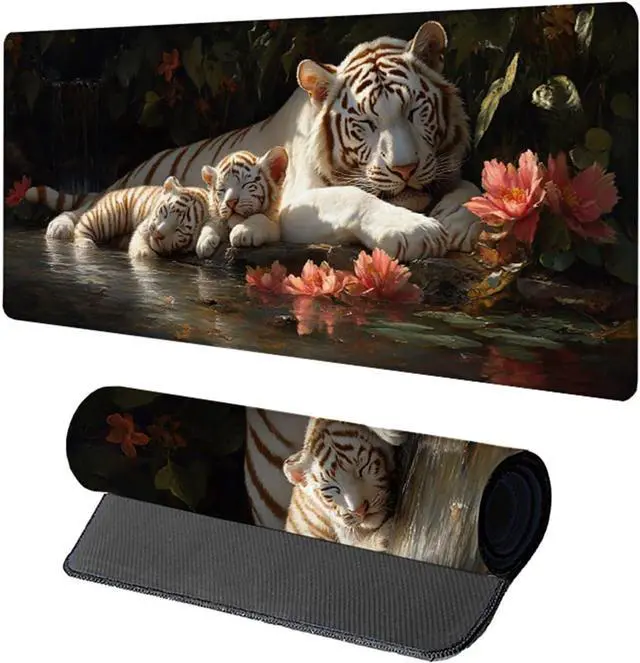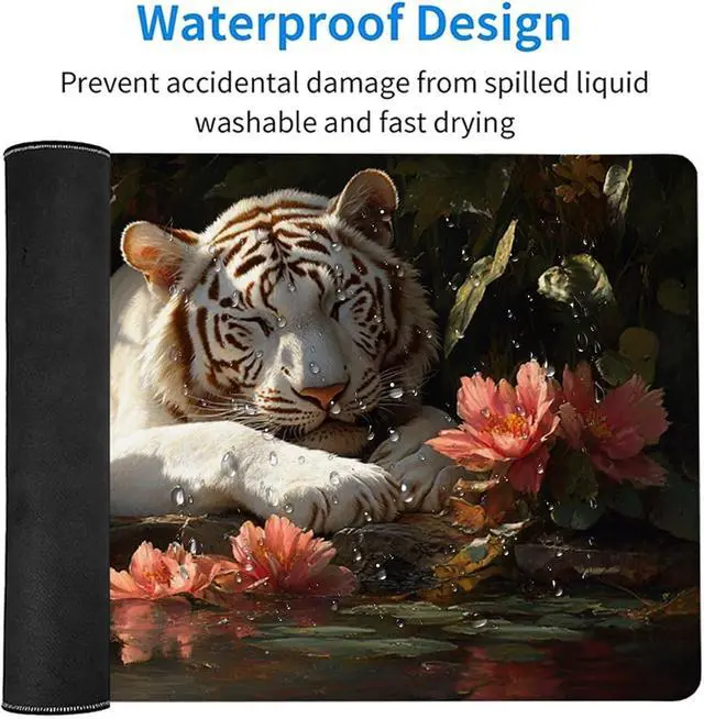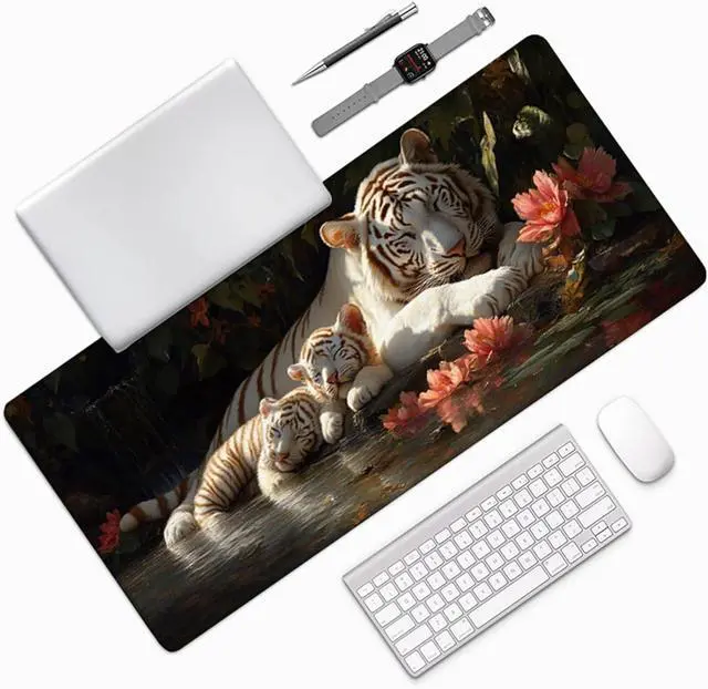 Tiger Mouse Pad, Gaming Mouse Pad 60x32in, Desk Mat with Stitched Edges, Large Mousepad Waterproof, Gaming Accessories Keyboard Mat, Office Desk Accessories, for Gamer Computer Office, Grey G-1011