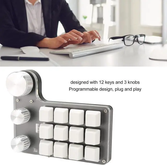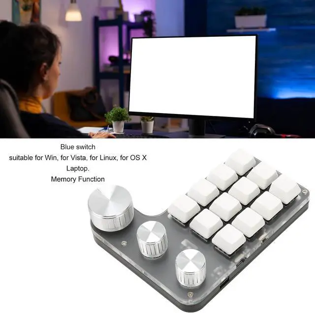 ABS: This mini mechanical keypad with 12 keys and 3 knobs adopts ABS and acrylic material. Blue switch offers comfortable working and gaming experience.