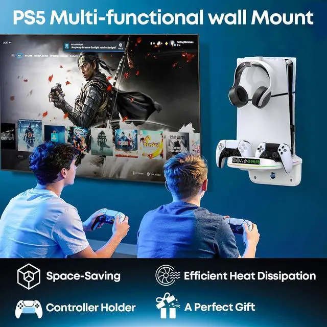 Compatibility for All P S5 Models: This p s5 mount wall is compatible with P S5, P S5 Slim, and P S5 Pro disc & digital version. It securely holds your console in place while saving valuable floor/desk space.The p s5 shelf also includes a headset holder, keeping your P S5, controllers, and headset all in one place for a super organized look. Its perfect for gifting to family, friends, and partners.