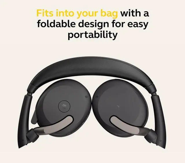 FITS INTO YOUR BAG - The Evolve2 65 Flex wireless headset can fold together at the twist of an earcup to fit into its pouch for easy portability and meeting flexibility.