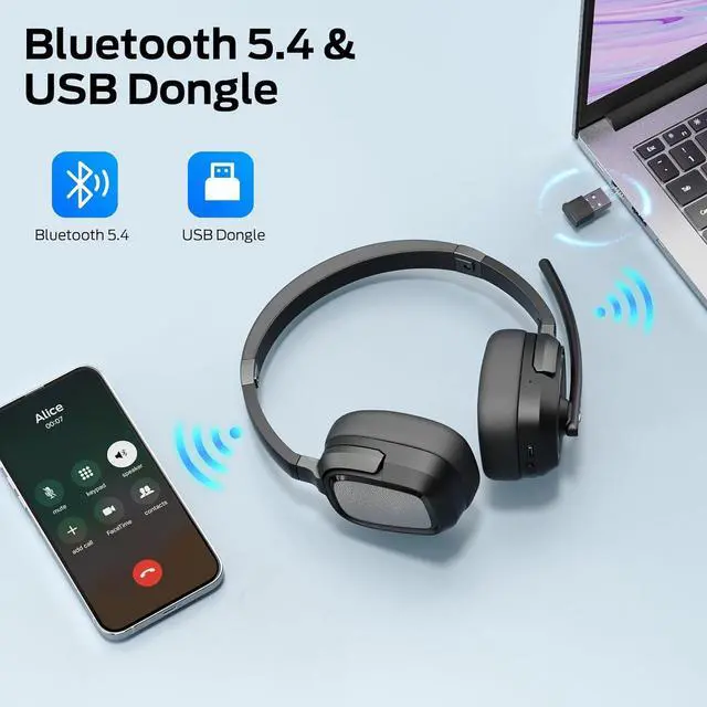Seamless Wireless Freedom Featuring Bluetooth 5.4 and a USB dongle, this wireless headset provides stable, low-latency connectivity for multiple devices. Enjoy up to 15m of wireless range to move freely in your workspace while staying connected. Seamless compatibility with popular platforms like Teams, Zoom, Skype, Webex, and Google Meet keeps your calls and meetings running smoothly.