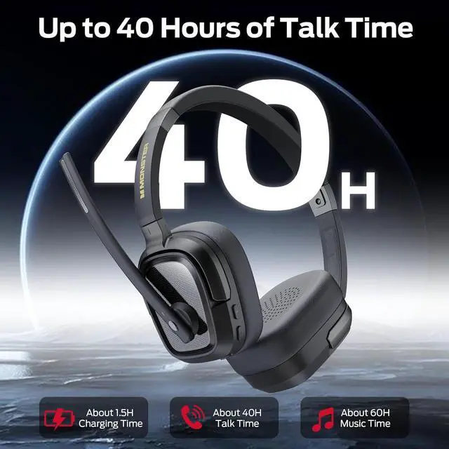 Long Battery Life with Fast Recharge Get fully charged in only 1.55 hours and enjoy 60 hours of music or 40 hours of talk time. Designed for long meetings, extended calls, or nonstop entertainment, it keeps you productive and connected throughout the day without frequent recharging, giving you freedom to focus on what matters most.
