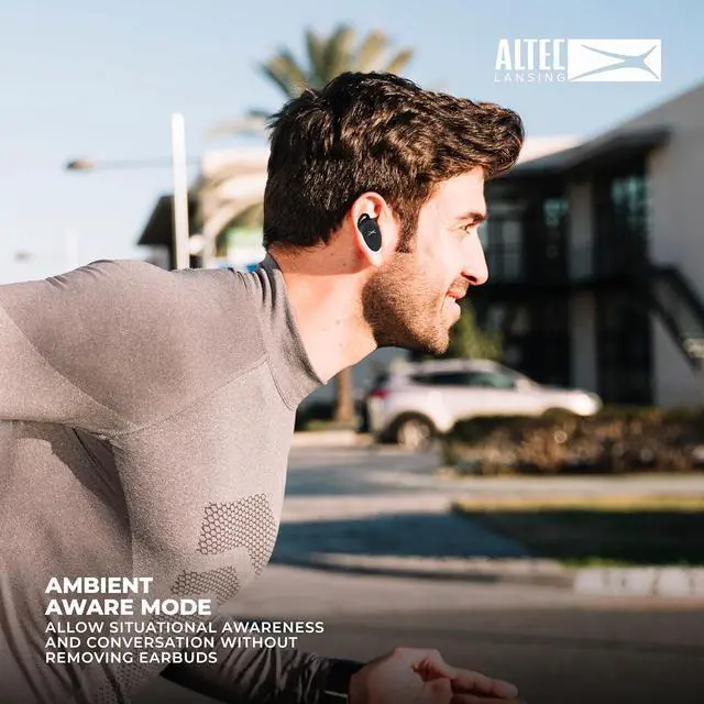 Introducing the NANOBUDS ANC 2.0 by ALTEC LANSING, the next evolution in wireless earbuds engineered for everyday life, fitness, and travel. These bluetooth earbuds are packed with premium features that blend convenience, performance, and durability in a sleek design. Equipped with advanced Hybrid Active Noise Cancellation technology using both Feedback and Feedforward canceling, they block out unwanted noise, so you can enjoy deep focus or immerse yourself in your favorite tracks. Need awareness of your surroundings? Switch to Ambient Aware mode and navigate city streets or busy environments without missing a beat.