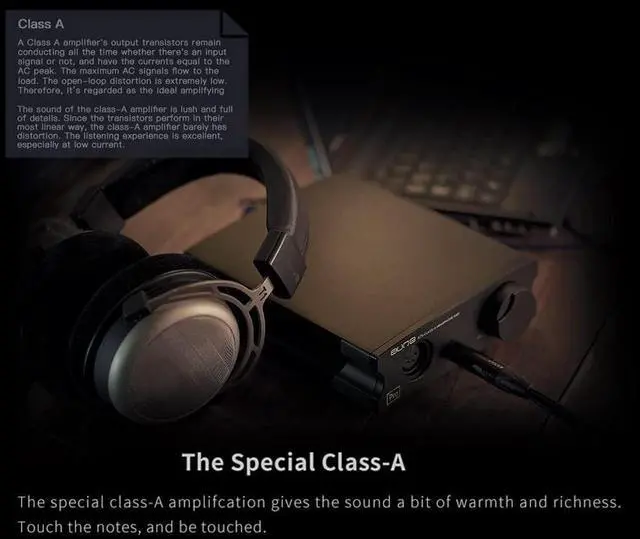 [Feel the Beauty of Class-A] A Class-A amps output BJTs are always conducting whether theres an input signal or not, and have the currents equal to the AC peak. The open-loop distortion is extremely low. Therefore, class-A is considered as the ideal-sounding kind of amp. The sound is lush and full of details. And since the transistors perform in their most linear way, the class-A amp barely has distortion. The listening experience is excellent