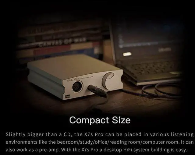 Powerful & Compact - 8 pieces of BJT, 4 independent amp circuits, positive and negative power supply... The X7s Pro aims to bring out the full potential of your headphones. Yet its just slightly bigger than a CD, and can be placed in various scenarios like your bedroom/study/office/reading room/computer room. It also has preamp output, supporting connection with active speakers and power amp. With the X7s Pro, the HiFi system building is easy