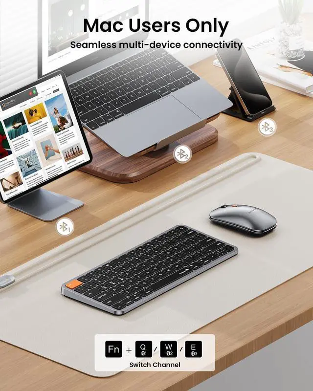 Maximize Efficiency with Compact Design: Experience enhanced productivity with our compact keyboard mouse tailored for Mac devices. The compact layout allows for easy portability and saves desk space without compromising performance, making it perfect for on-the-go setups
