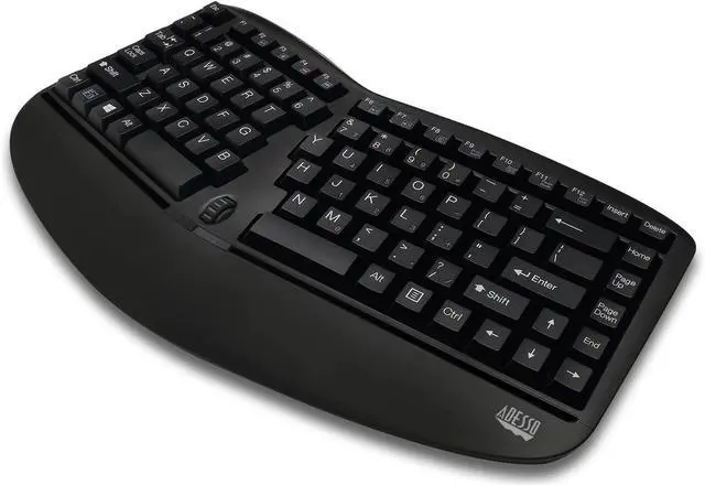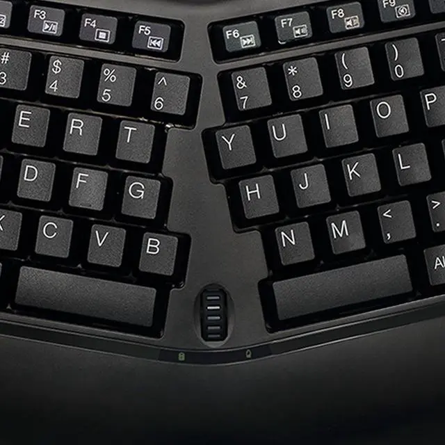 Split key design - encourages natural position of hands, wrists and forearms for maximum comfort.