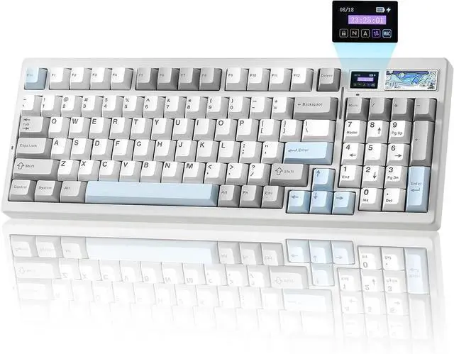 Custom LCD Keyboard for Personalized Display:YUNZII IF99 wireless mechanical keyboards features a customizable LCD screen that can display time, GIFs, photos, battery status, connection mode, and more. Personalize it with your favorite images, like pets or loved ones, to keep you motivated during work or gaming. Enjoy an added touch of personalization that sets your computer keyboard with screen apart.
