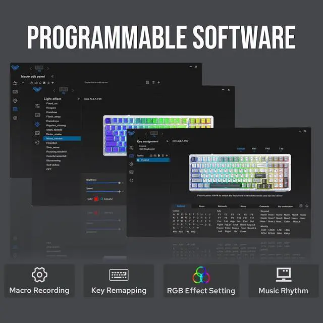 96% Layout&Gasket Mounted StructureA 96% layout keyboard with 99 keys can help you save more space on your desk, while keeping the arrow keys and number pad you need for games and work. The F99 gaming keyboard gasket-mounted design, complemented by an extended one-piece silicone pad, delivers unmatched typing resilience and stability. This soft elastic structure ensures each keystroke is both softer and more responsive.