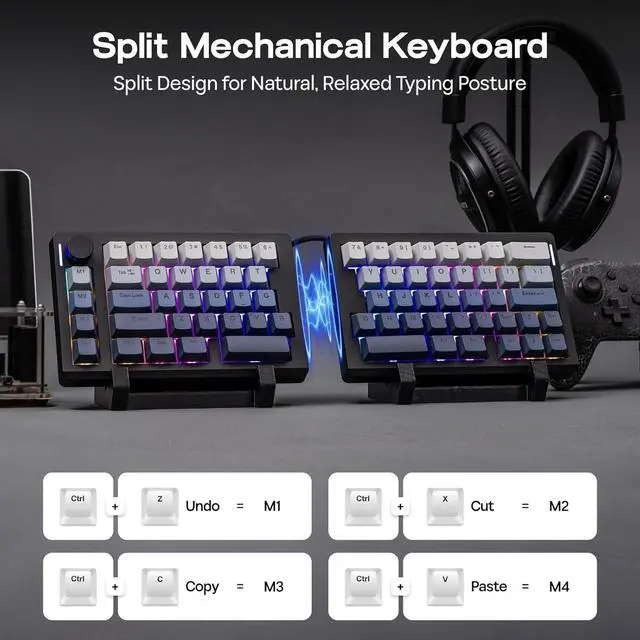 Creamy Linear Switch & Programmable Knob: Relish in the intuitive control from the rotary knob of Split70 mechanical keyboard, that toggles anything from volume, brightness to multimedia with a spin. Enjoy the factory-lubed Wisteria Linear V2 switch for creamy smooth typing, or hot-swap to any 3/5-pin mechanical switch for customization.