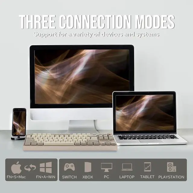 Wire-free Convenience: For users of all devices and OS systems, the EPOMAKER P87 is compatible in cable, wireless 2.4Ghz or Bluetooth 5.0 with Mac, Linux and Mainstream Gaming controllers. Relish in the hassle-free USB-C cable mode for ultra-fast low latency, or the cluster-free wireless mode in stable 2.4Ghz and versatile Bluetooth mode. Switch between Mac/Win mode with FN+A/S for cross-system multicasting, and stream through the digital world with the tri-mode P87 keyboard as your ideal companion