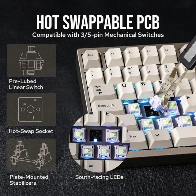 QMK/VIA Custom Keyboard: Tailored to your personal needs, the QMK/VIA compatibility of P87 keyboard offers unparalleled customization and flexibility in key mapping, macro editing and keyboard setting. Complements such convenience, the P87 is equipped with NKRO for anti-ghosting and on-board memory that store layout without software running on the background. For productivity seekers and accessibility pursuers in gaming and life, P87 keyboard offers user-friendly personalization with the VIA software that modifies layout in real-time without the need to download