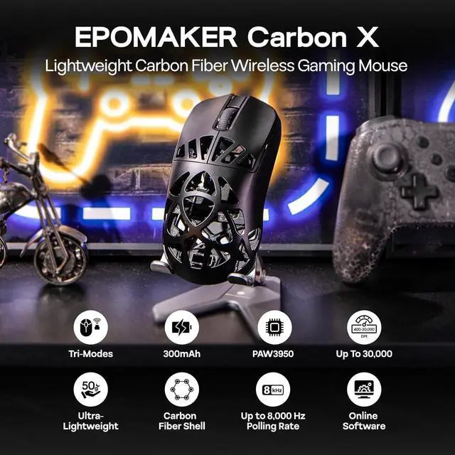 High-Performance Gaming Mouse: Experience gaming like never before with the EPOMAKER Carbon X Wireless Gaming Mouse. Engineered for precision and speed, this lightweight gaming mouse combines a state-of-the-art PAW3950 sensor and carbon fiber shell to deliver unmatched performance. With adjustable DPI settings from 400 to an astounding 30,000, you can easily customize your sensitivity for any game or application. Enhance your gaming experience with programmable buttons and up to 8000 Hz polling rate, making the Carbon X the ultimate choice for gamers seeking agility and reliability.