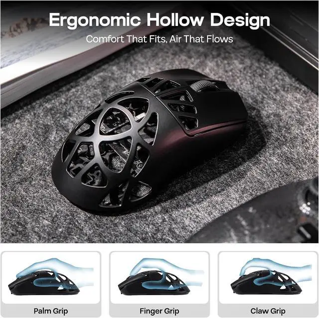 Lightweight & Ergonomic Design: The Carbon X mouse weighs only about 50 grams, providing superior flexibility and portability in gameplay. The shell is made of high-tech carbon fiber materials, ensuring excellent durability and lightweight feel. Its ergonomic design is carefully considered to perfectly fit the contours of the hand, offering users an ultimate comfort experience during long usage. This design effectively reduces hand fatigue, allowing players to focus on the game without being distracted by physical discomfort.