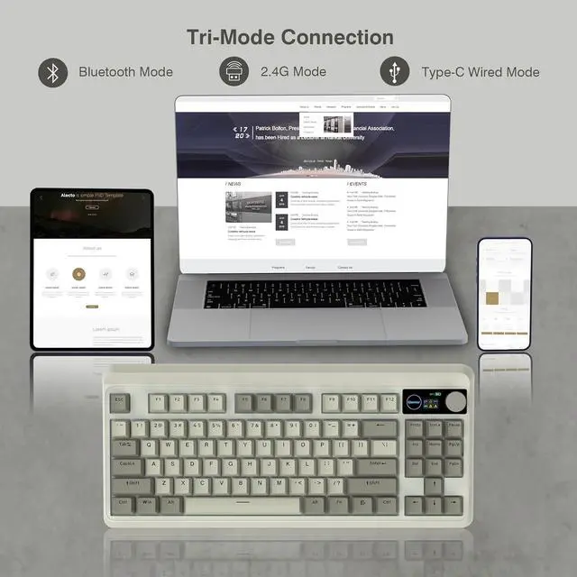 3-Mode Connection Wireless KeyboardThe M87 Pro TKL mechanical keyboard gears tri-mode connectivity technology, USB-C wired, BT 5.1 and 2.4Ghz wireless modes, which can be easily switched not only with key combinations, but also by knobs.