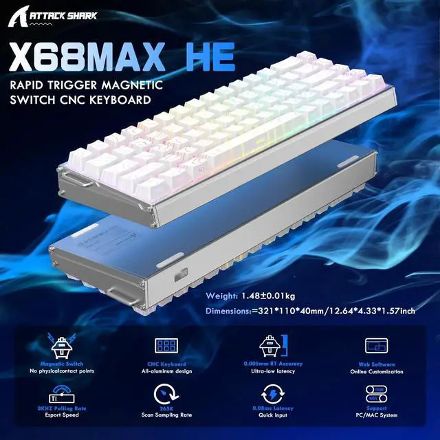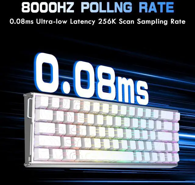 256KHz Scan Rate & 0.08ms Latency Powered by a custom high-frequency eSports chip, the X68MAX gaming keyboard features a 256,000Hz scan rate and true 8000Hz Polling Rate. Achieve lightning-fast 0.08ms latency-nearly 12.5x faster than traditional mechanical keyboards-for the ultimate edge in tournament-level play.