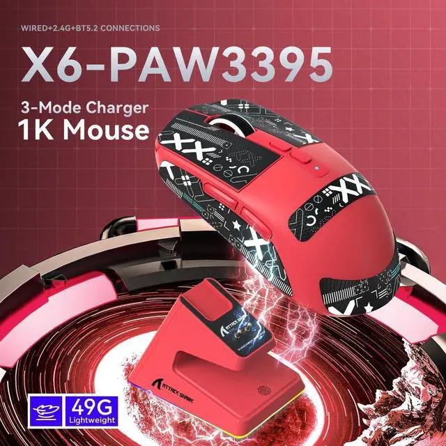 RGB Backlight Charging Base&Touch SwitchThe ATTACK SHARK X6 mouse can be quickly recharged with the cool RGB backlight charging dock, which features an RGB backlight effect that can be customized with tactile controls. With up to 200 hours of use on a single charge, you can enjoy an uninterrupted gaming experience without worrying about your mouse's battery life or the hassle of finding a charging cable.