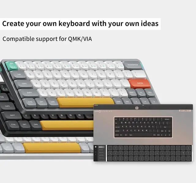 Custom backlightWe added two RGB light bars on each side of the Air60 V2 aluminum frame. The left sidelight shows the caps lock and connection mode, while the right sidelight bar indicates the battery level and system mode. When you activate the gradient light effect, the sidelights will illuminate your keyboard with an arresting glow.The VIA clients and configuration page available on multiple OSes, can be used to create a near infinity of personalized lighting and color effects