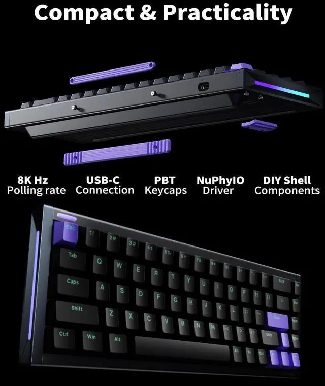Quick Response:16k Hz full-key scan rate with an 8k Hz USB polling rate, featuring a 0.125 ms delay and "zero" delay function triggers, delivering a professional esports experience.