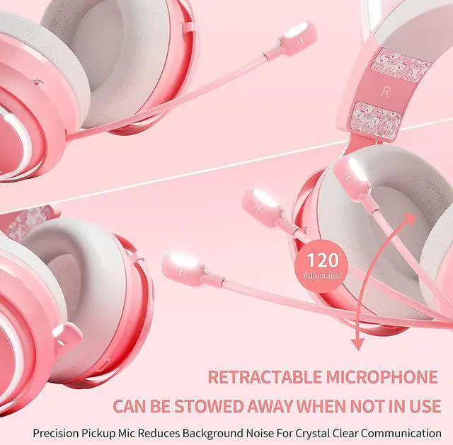 Retractable & 120° Rotating Microphone - Experience clear communication with the retractable and 120° rotating microphone of the GS510 wireless kitty headphones. The omnidirectional sensitive microphone ensures high-quality voice transmission and resulting in a clearer voice experience.