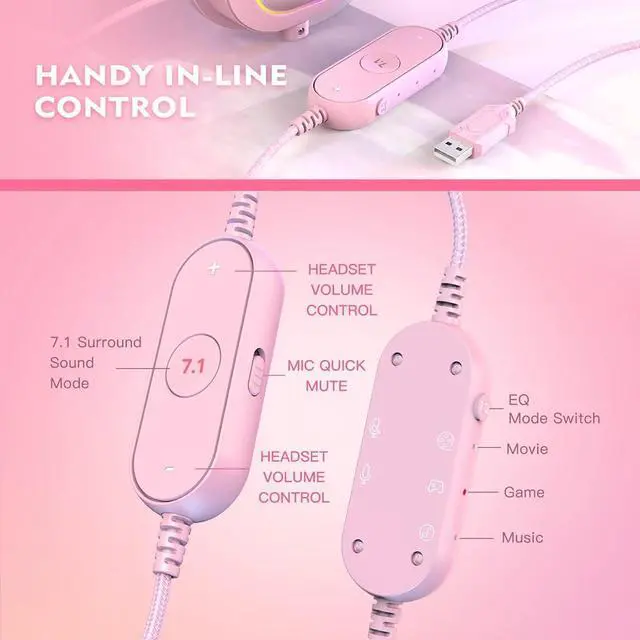 [Special Design]Lightweight headbands and earmuffs on the wired headphones will not press but fit your ears and head. You will not feel sweat or uncomfortable even a long gaming session. Casual RGB light looping is more attractive in the dark, enhancing the color sense of your game room.