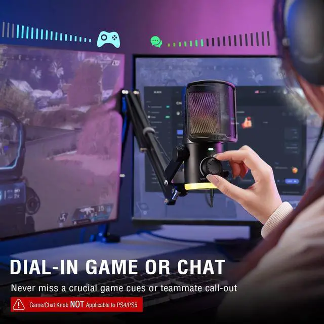 [Balance Game/Chat Audio] Game:Voice balance on the PC gaming microphone lets you easily adjust the audio ratio of game to voice chat. Balance how much game sound and voice chat you want to hear, seamlessly shifting between immersion and strategy. Dial up the game audio to catch footsteps and rustling to lock the position of enemy for a competitive edge. When you stand apart from your squad, turn up the chat ratio to clearly hear the direction your teammate pointing for quicker reaction.