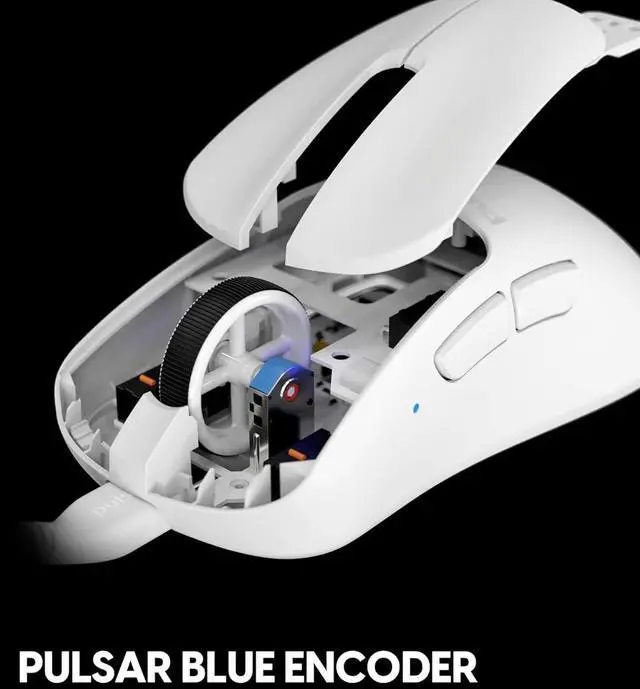 Speed of Light Optical Switches - Minimizing the chances of unintended double clicks, these switches ensure swift and pinpoint responses. Paired with the Pulsar Blue Encoder, which offers a delightful tactile rotation experience, all within a dust-proof structure.
