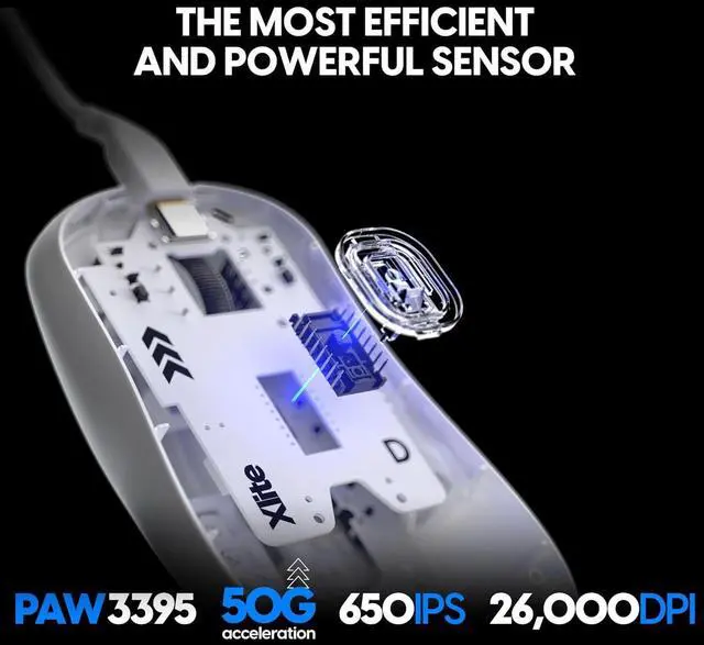 Cutting-Edge Sensor Technology - Featuring PixArts PAW3395 sensor with integrated Motion-Sync Technology, including 650 IPS speed, 50g acceleration, programmable DPI up to 26,000, and a rapid 1000Hz / 1ms polling rate.