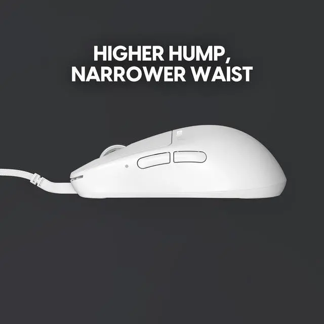 Higher Hump Narrower Waist - Elevated rear hump and a more slender waist in contrast to the standard X2 model. Offers improved stability for those who adopt a more aggressive claw grip, as well as enhanced support for the palm when it's resting on the mouse.
