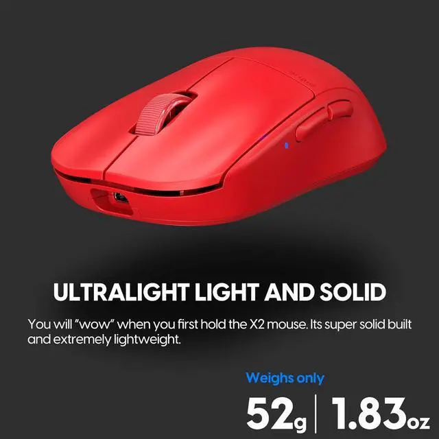 ULTRA LIGHT WEIGHT 52g - Simple but not simpler. We kept this in mind all the time when we designed X2 structure. We designed a structure as simple as possible but maintained its durability. In the result, you are getting high performance gaming mouse that is lighter than the egg in your hand.