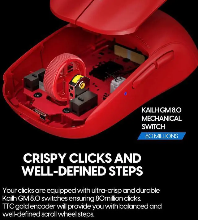 WELL DEFINDED SWITCHES - Your clicks are equipped with ultra-crisp and durable Kailh GM 8.0 switches ensuring 80million clicks. TTC gold encoder will provide you with balanced and well-defined scroll wheel steps.