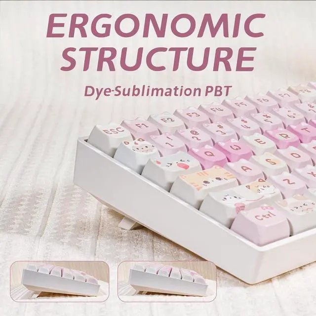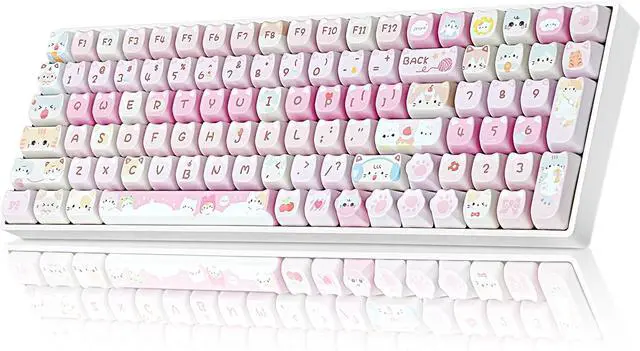 5 Side Dye Sublimation Keycaps with Clear LegendsCrafted from high-purity PBT with Dye Sublimation technology, the keycaps resist shine and wear while featuring a Meow Meow Squad theme that glows with RGB. Side-printed, molded legends ensure long-term clarity and smooth light diffusion.