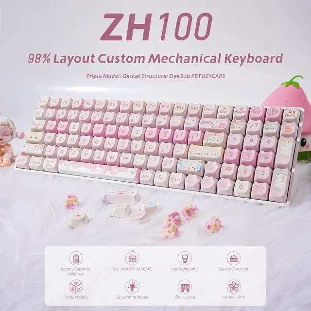 Ergonomic & Durable Build with StyleMAO-profile keycaps, and stable large-key tuning, the ZH100 provides lasting comfort and control. Its 2.4lb weight ensures stability on your desk, Ensuring the playful cat illustrations enveloping each key are resistant to fading and wear