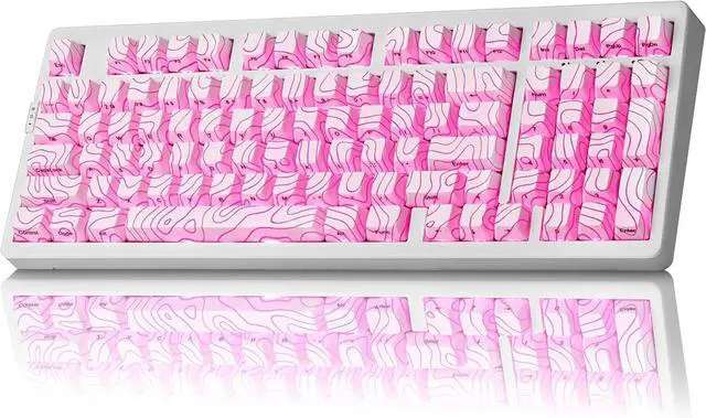 IMD PBT Keycaps with Shine-Through LegendsMade from high-purity PBT using IMD Technology, these keycaps resist shine, fading, and long-term wear. The white topographic theme pattern glows beautifully under RGB, while side-printed legends are molded, not printedoffering enhanced durability and clear shine-through effects without obstruction.
