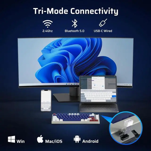 [Multi-Connectivity Mastery] Effortlessly switch between BT5.0, hyper-speed 2.4GHz wireless, and wired USB-C for simultaneous charging. Tailor your connection to fit every need.