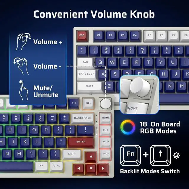 [Customizable Hot-Swap Design] Enjoy the freedom of DIY with our hot-swappable PCB, accommodating 3 or 5 pins switches without soldering. Compatible with popular MX-style switches like Gateron and Kailh, enabling you to craft your personalized retro 75 percent gaming keyboard.