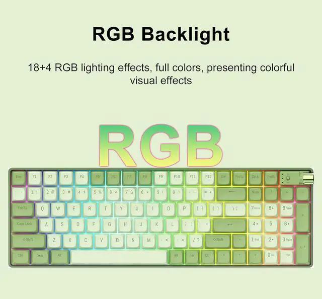 Hot Swappable TTC Gold Pink SwitchFOPATO P98 gaming keyboard adopts the 2 Gen Gold Pink Switch from TTC. Its silver plated pins prevent oxidation and have a long service life, gentle and smooth, responsive. 37gf trigger pressure, 2.0mm quick trigger, suitable for office and gaming. Supports full key hot swapping. It also has 18+4 RGB lighting effects, with full colors and a colorful visual effect