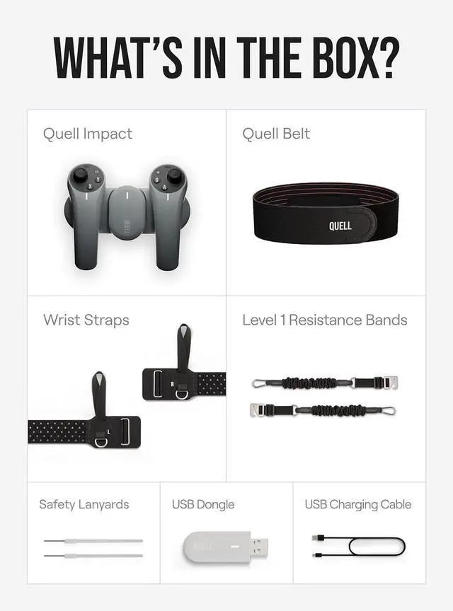 Turn workout boredom into endless fitness motivation with Quell. Level up with high octane gameplay and full body, resistance based workouts. Effective cardio sessions in as little as 20 minutes - run, jump and fight your way to fitness. Sensor based motion tracking turns your body into the controller as you adventure through ever changing worlds. Feel every movement with powerful haptics. No two workouts are the same. Adjust your workout difficulty with various resistance levels as you strengthen and tone your muscles. Burn more than 600 calories an hour with immersive gameplay that you control. A personalised workout experience that adapts to your progress to maximize your potential. As you get stronger the game gets harder. Benchmark your fitness and track your progress with in-game stats and post-session analytics. Smash your exercise goals from home with personalised workout tips. Earn rewards and celebrate your wins. Enjoy regular game updates bringing new challenges, enemies and rewards.