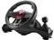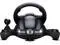 270 degree rotation of steering wheel with ergonomic contours and rubber-coated grip.