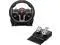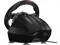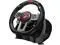 Adjustable rotation (270 and 900 degree) of steering wheel with ergonomic contours and rubber-coated grip.