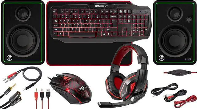 THE ULTIMATE RED GAMING ACCESSORIES KIT | 4-in-1 Combo Bundle Comes with Everything Gamers Need to Play Their Favorite Desktop, Laptop & Console Video Games in Cool, Blue Style | Illuminated Keyboard, Optical Mouse, Mouse Pad & Headset Feature Visually Stunning Red Backlight with Adjustable Brightness & Mesmerizing BLUE LED Lighting Effects