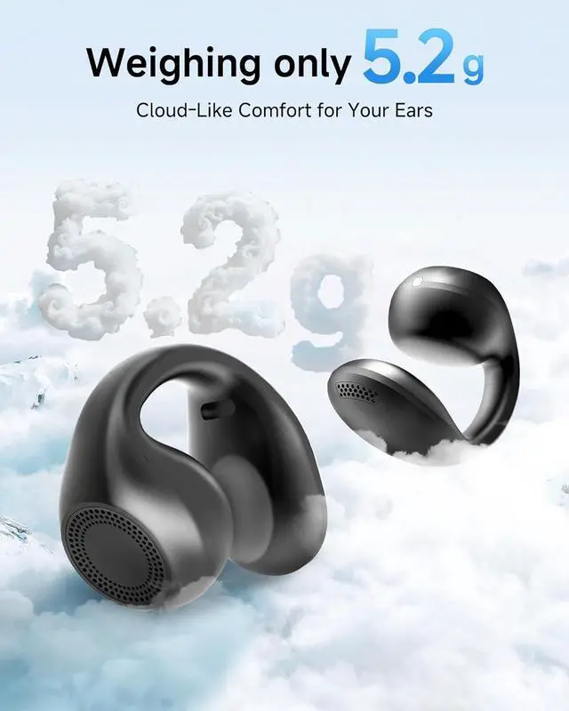 1.Open - Ear Clip - On Design for All - Day Comfort: As King Lucky clip on earbuds, these open ear clip on earbuds feature an innovative open - ear design, making them ideal open ear earbuds and open - ear earbuds. The lightweight 5.3g build ensures easy wear, while the clip - on structure of these earbuds clip on fits securelyperfect as Wireless earbuds for small ears and glasses wearers. Unlike in - ear models, these open ear headphones keep your ear canals unblocked for natural comfort.The soft cushioned pads gently rest on your ears, offering a level of comfort that is hard to match in the world of Bluetooth earbuds