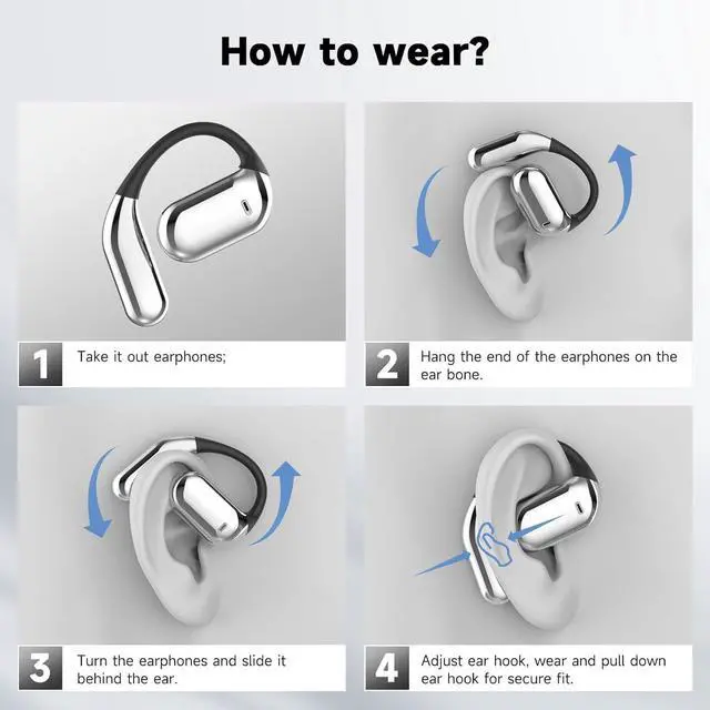 Open Ear Design - Enhanced with an IPX7 waterproof rating, Q16Pro open-ear Bluetooth headphones are resilient in all weather conditions, empowering you to explore any environment with confidence. Elevate your audio journey with these headphones. Crafted for unmatched comfort, their unique design embraces your ears for a natural, pressure-free listening experience. Soft silicone ear hooks ensure a snug fit for any activity.
