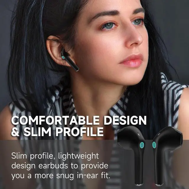 [Comfortable and Secure Fit] Designed with a slim profile and a longer earbud stem, our wireless earbuds offer a more snug in-ear fit. This creates a perfect seal, improves sound quality, and ensures a comfortable and secure fit, making them ideal for active lifestyles and sports activities.